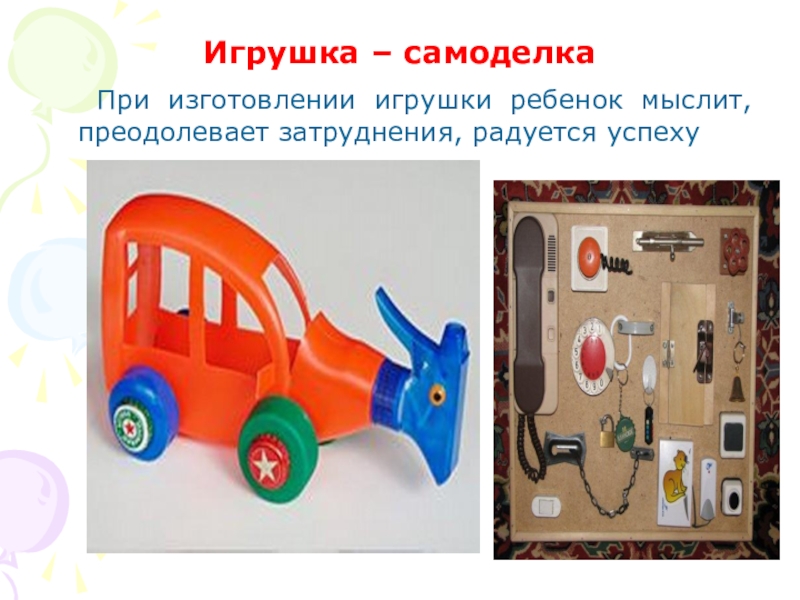 При изготовлении игрушки ребенок мыслит, преодолевает затруднения,