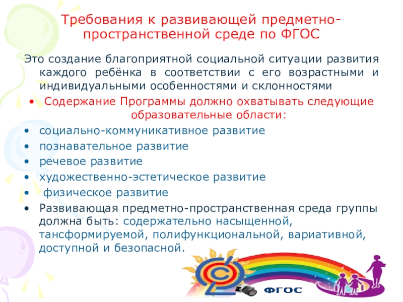 Слайд 14Требования к развивающей предметно-пространственной среде по ФГОС
