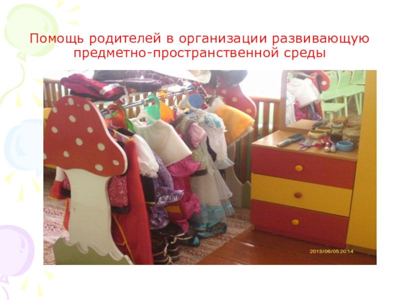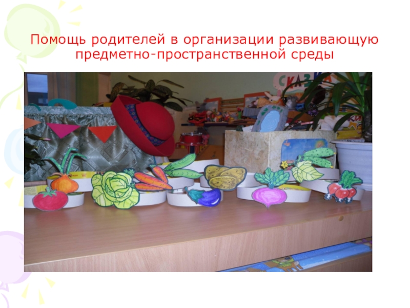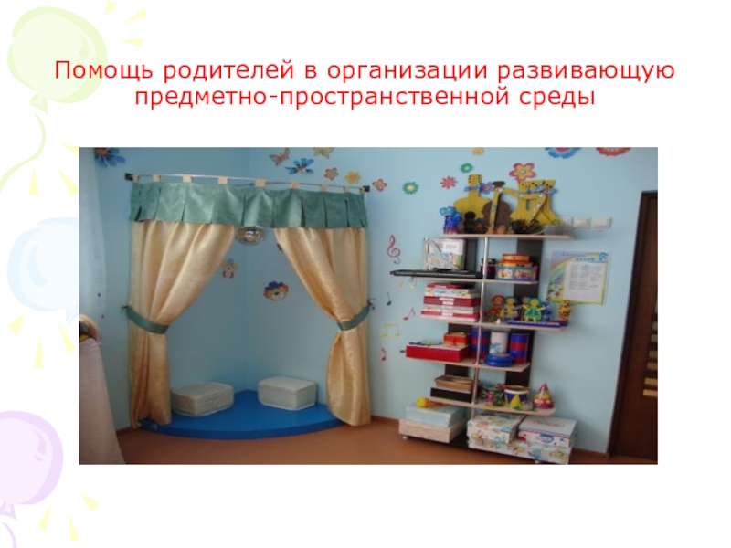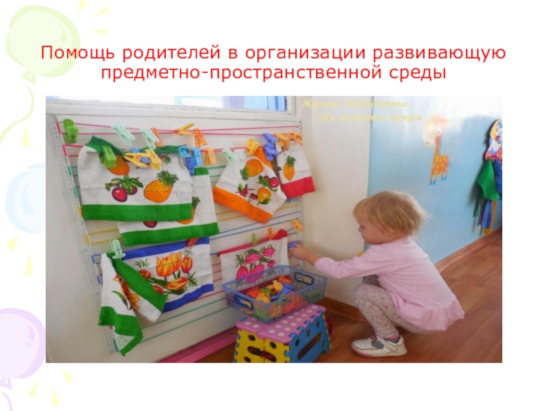 Слайд 9Помощь родителей в организации развивающую предметно-пространственной среды