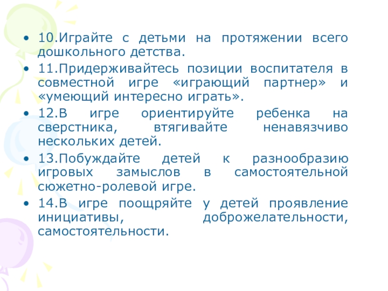 14.В игре поощряйте у детей проявление инициативы, доброжелательности, самостоятельности.