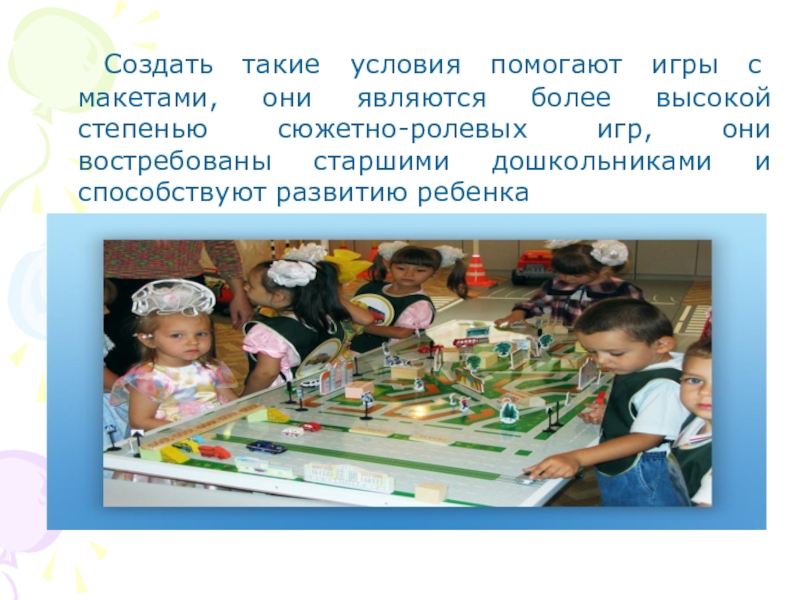 Слайд 28 Создать такие условия помогают игры с макетами, они являются более