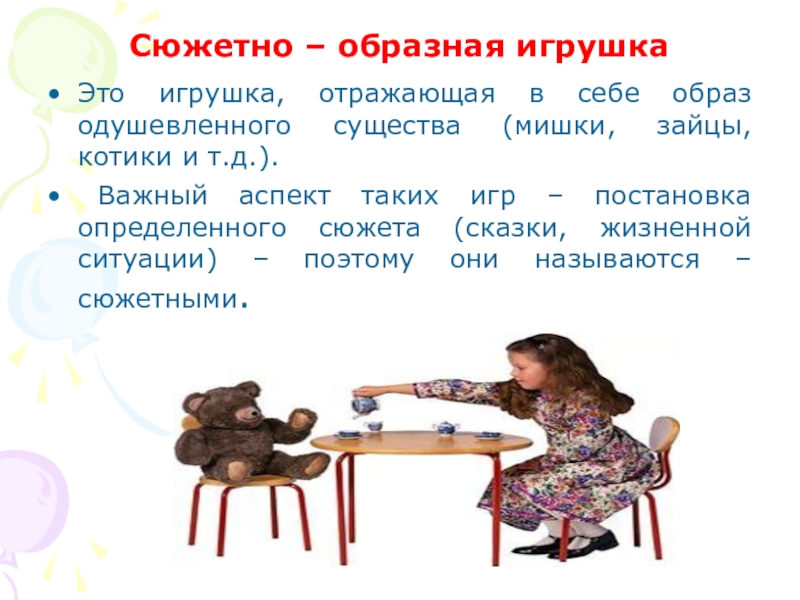 Важный аспект таких игр – постановка определенного сюжета (сказки, жизненной ситуации) – поэтому они называются – сюжетными.