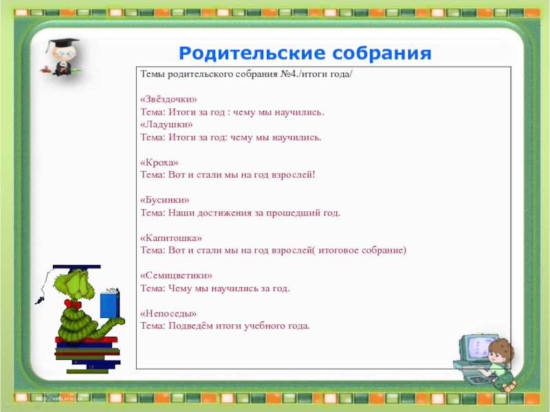 Это сайт презентаций, где можно хранить и обмениваться своими презентациями, докладами, проектами, шаблонами в формате PowerPoint с другими пользователями. Мы помогаем школьникам, студентам, учителям, преподавателям хранить и обмениваться учебными материалами.