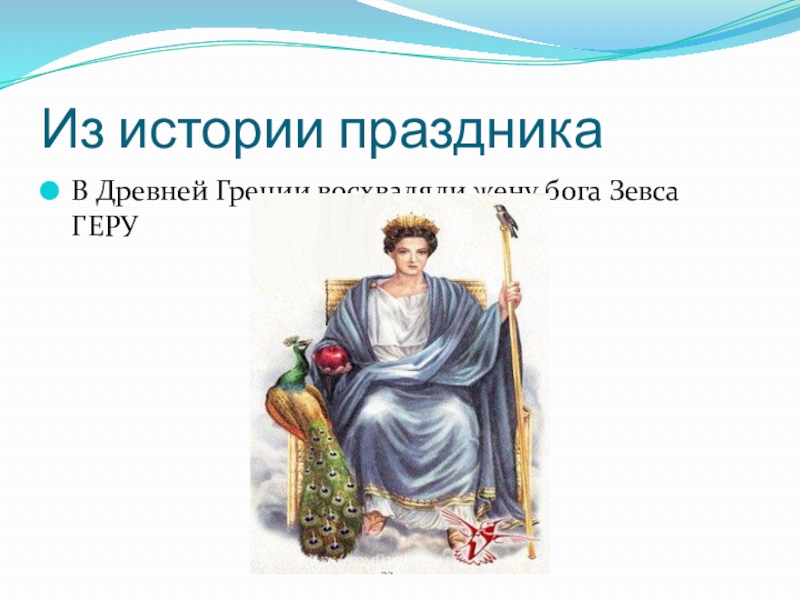 Из истории праздникаВ Древней Греции восхваляли жену бога Зевса ГЕРУ