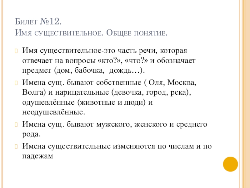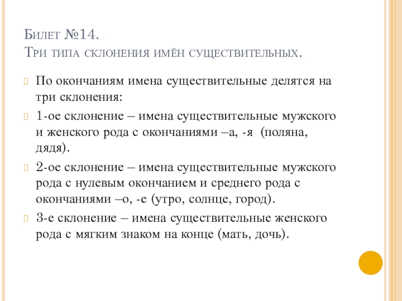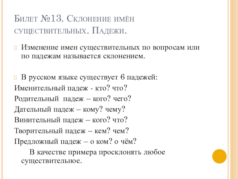 Слайд 13Билет №13. Склонение имён существительных. Падежи.