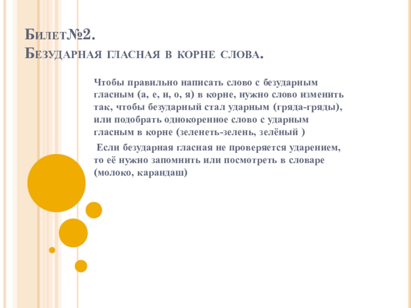 я) в корне, нужно слово изменить так, чтобы безударный стал ударным (гряда-гряды), или подобрать однокоренное слово с ударным гласным в корне (зеленеть-зелень, зелёный )