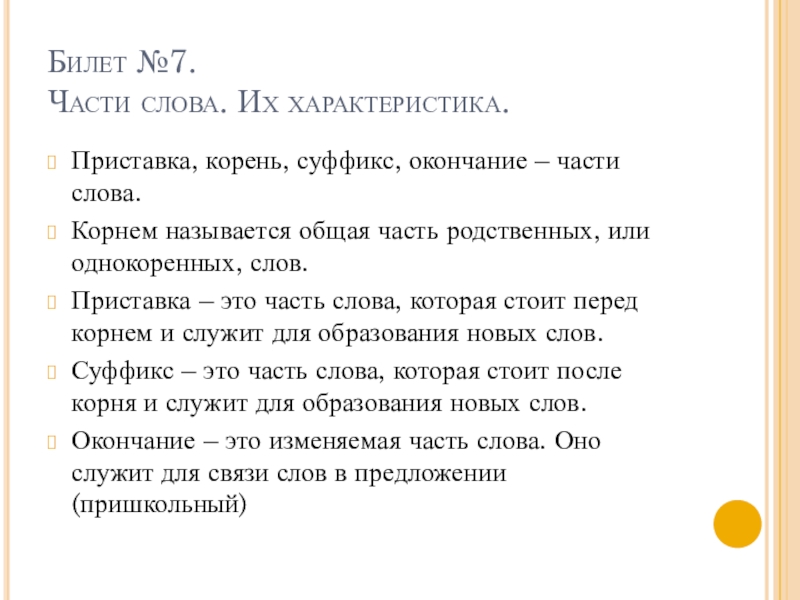 Окончание – это изменяемая часть слова. Оно служит для связи слов в предложении (пришкольный)