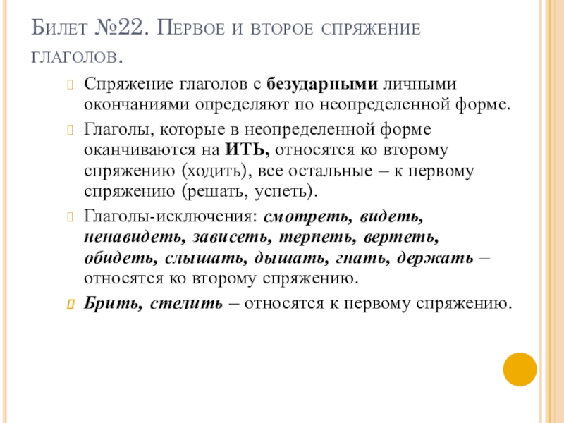 Слайд 22Билет №22. Первое и второе спряжение глаголов.