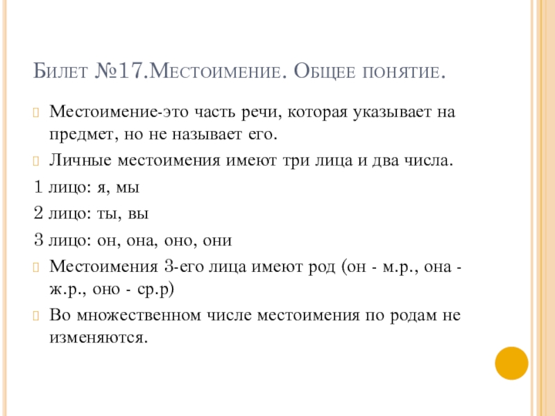 Слайд 17Билет №17.Местоимение. Общее понятие.