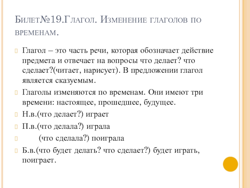Слайд 19Билет№19.Глагол. Изменение глаголов по временам.