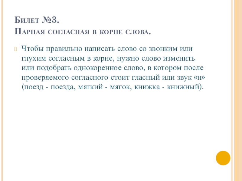 или глухим согласным в корне, нужно слово изменить или подобрать однокоренное слово, в котором после проверяемого согласного стоит гласный или звук «н» (поезд - поезда, мягкий - мягок, книжка - книжный).