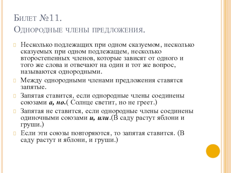 одном подлежащем, несколько второстепенных членов, которые зависят от одного и того же слова и отвечают на один и тот же вопрос, называются однородными.