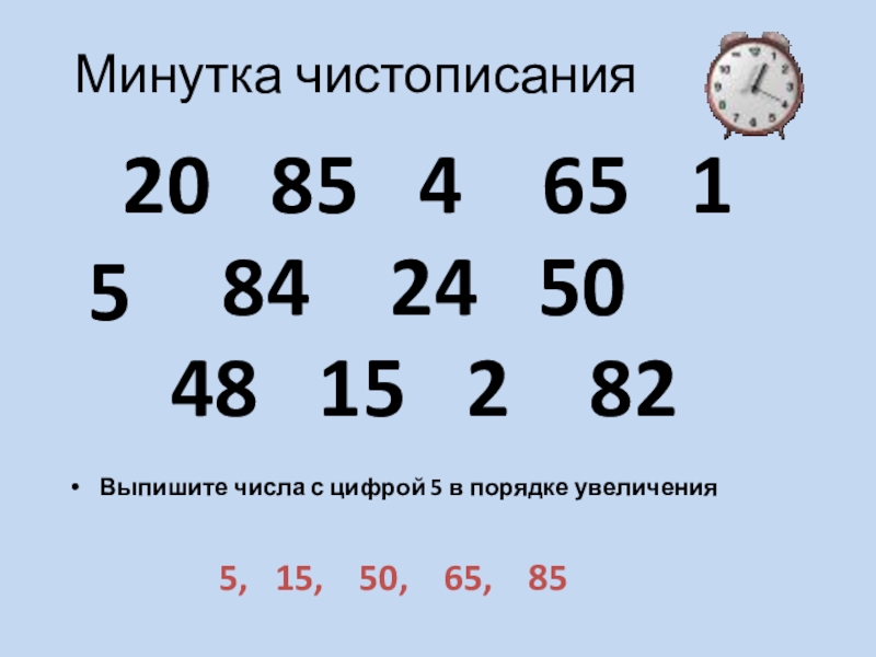Выпишите числа с цифрой 5 в порядке увеличения