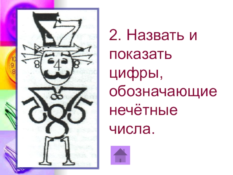2. Назвать и показать цифры, обозначающие нечётные числа. 1 кл.