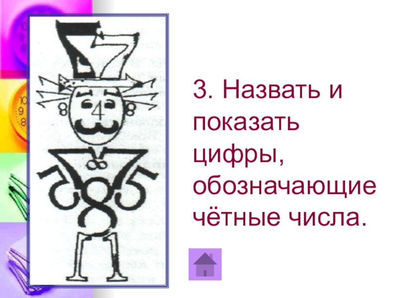 3. Назвать и показать цифры, обозначающие чётные числа. 1 кл.