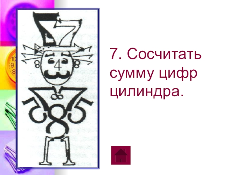7. Сосчитать сумму цифр цилиндра 1 – 2 кл.