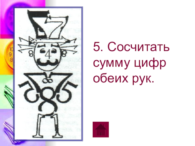 5. Сосчитать сумму цифр обеих рук. 1 - 2 кл.