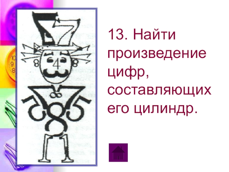 13. Найти произведение цифр, составляющих его цилиндр. 2 – 3 кл.