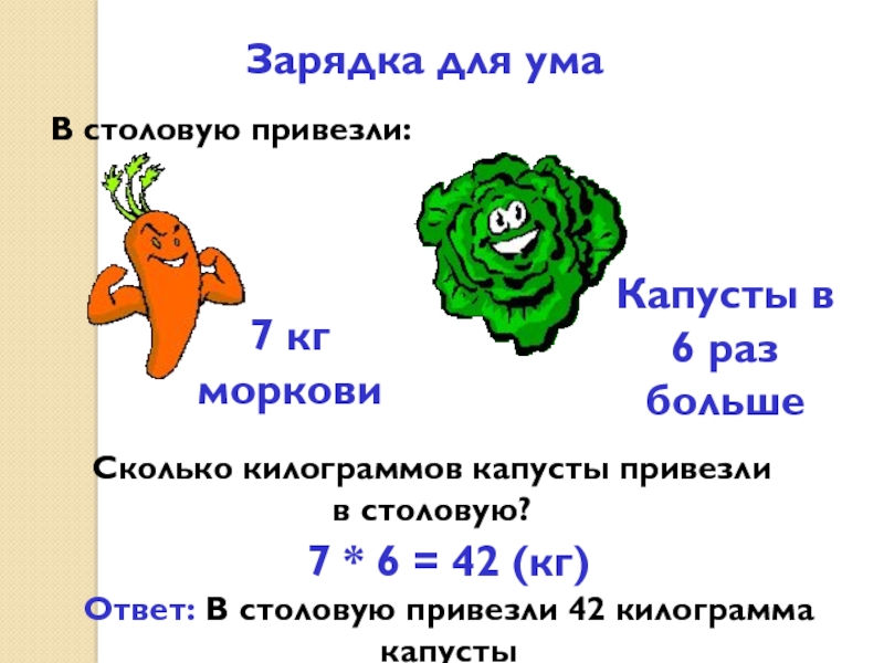 Ответ: В столовую привезли 42 килограмма капусты