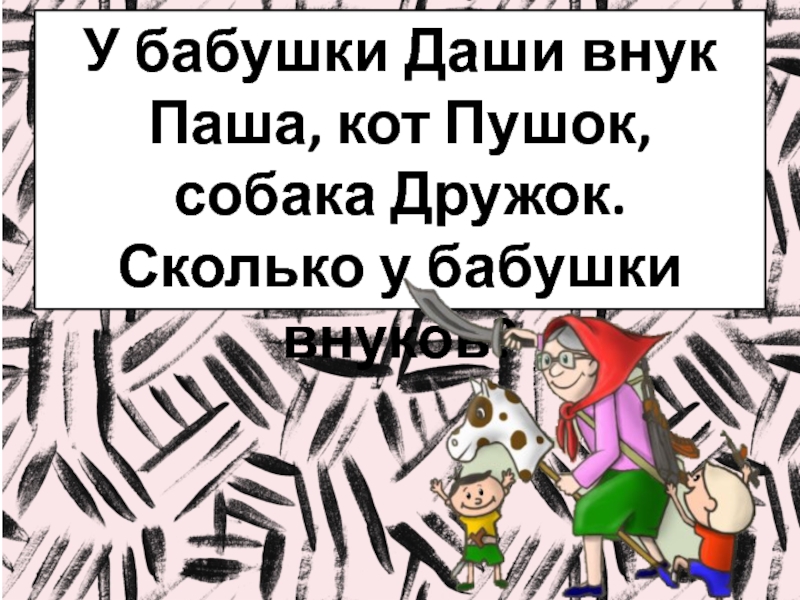 У бабушки Даши внук Паша, кот Пушок, собака Дружок. Сколько у бабушки внуков?