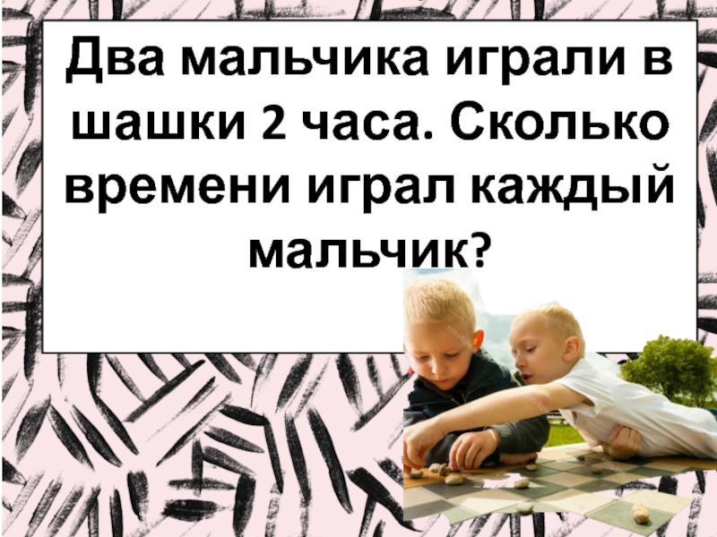 Два мальчика играли в шашки 2 часа. Сколько времени играл каждый мальчик?