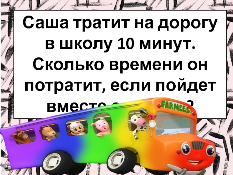 Саша тратит на дорогу в школу 10 минут. Сколько времени он потратит, если пойдет вместе с другом?