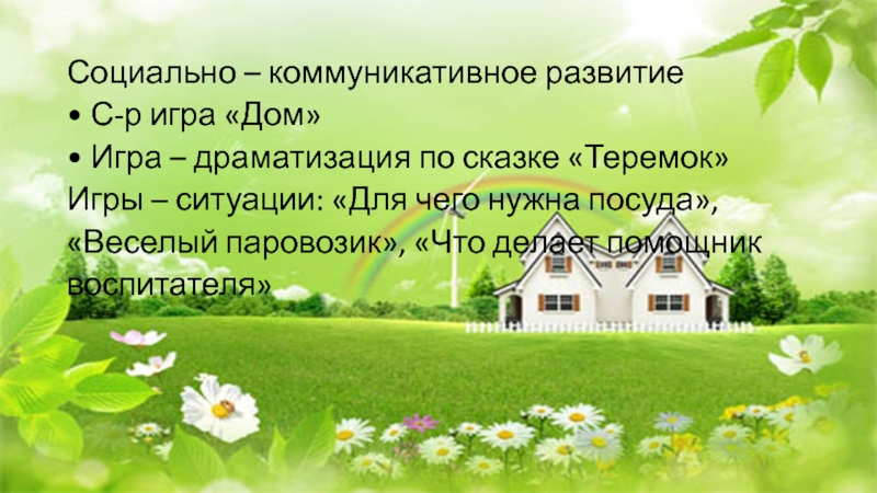 Игры – ситуации: «Для чего нужна посуда», «Веселый паровозик», «Что делает помощник воспитателя»