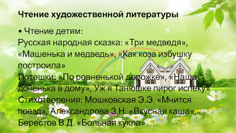 Стихотворения: Мошковская Э.Э. «Мчится поезд», Александрова З.Н. «Вкусная каша», Берестов В.Д. «Больная кукла»