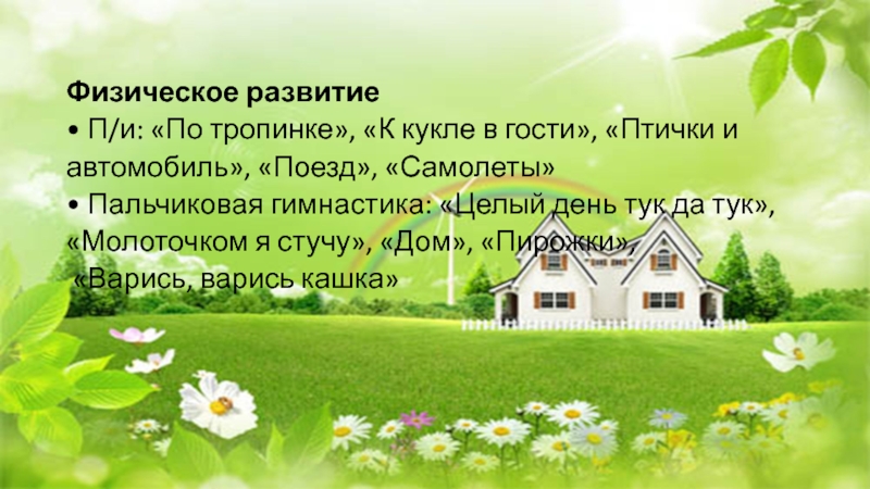 • П/и: «По тропинке», «К кукле в гости», «Птички и