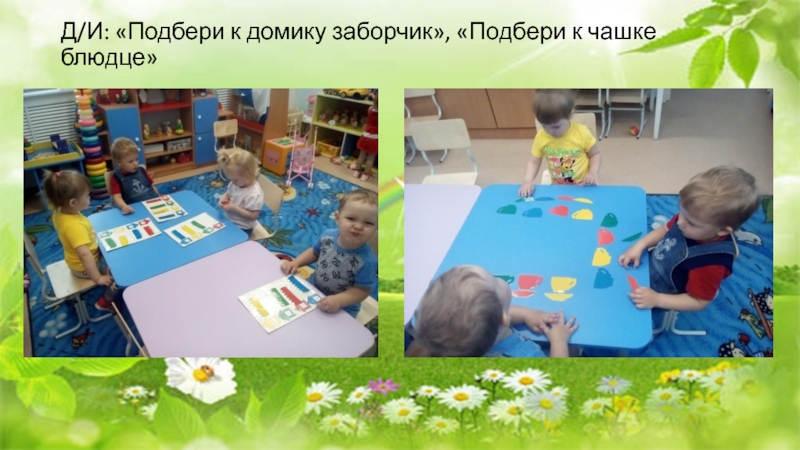 Слайд 8Д/И: «Подбери к домику заборчик», «Подбери к чашке блюдце»