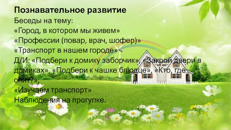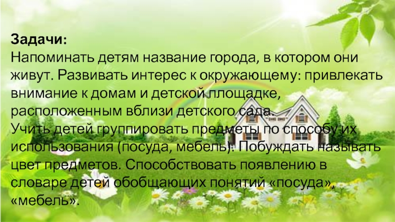 окружающему: привлекать внимание к домам и детской площадке, расположенным вблизи детского сада.