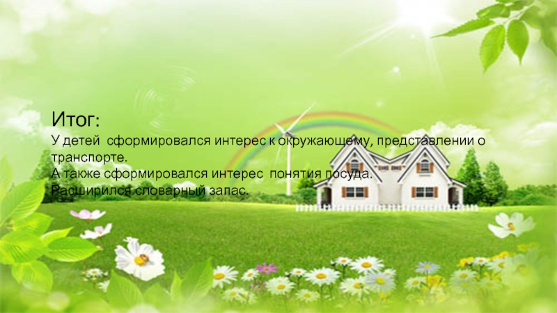 У детей сформировался интерес к окружающему, представлении о транспорте.