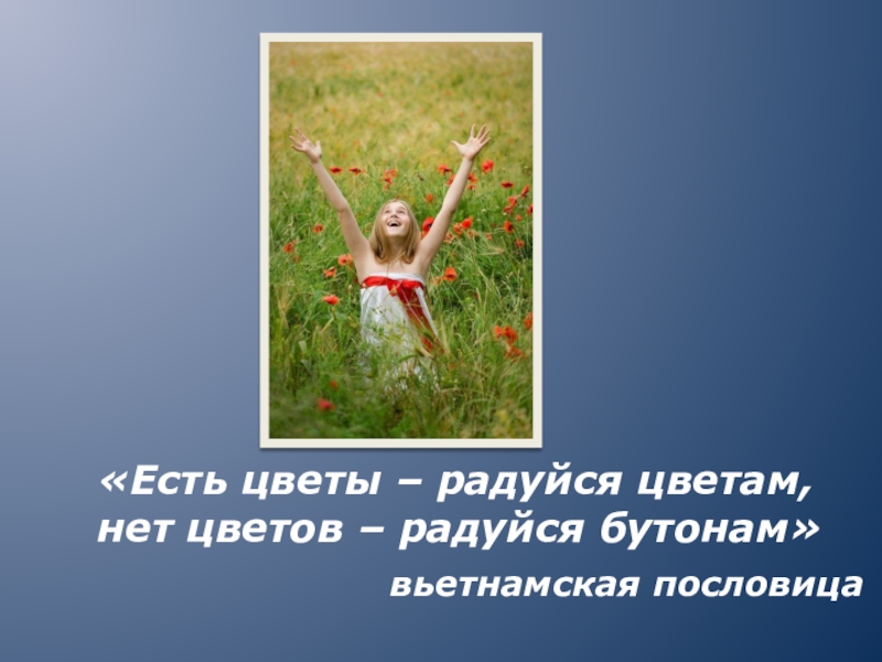 Слайд 15«Есть цветы – радуйся цветам, нет цветов – радуйся бутонам»
