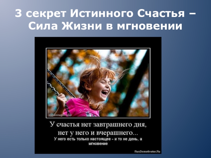 Слайд 43 секрет Истинного Счастья – Сила Жизни в мгновении