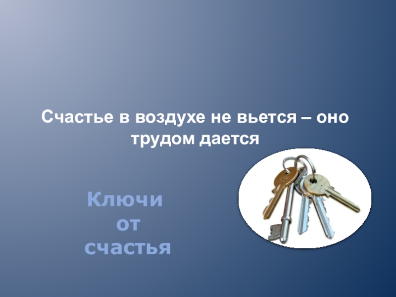 Счастье в воздухе не вьется – оно трудом дается  Ключи  от