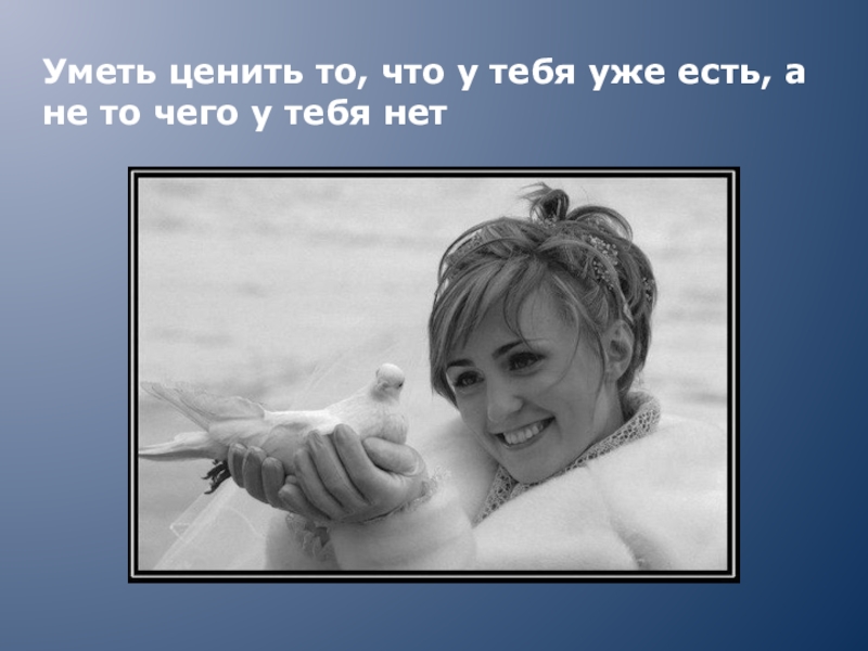 Слайд 13Уметь ценить то, что у тебя уже есть, а не то
