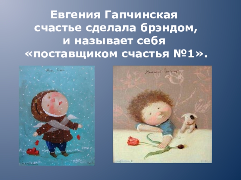 Слайд 21Евгения Гапчинская счастье сделала брэндом, и называет себя «поставщиком счастья №1».