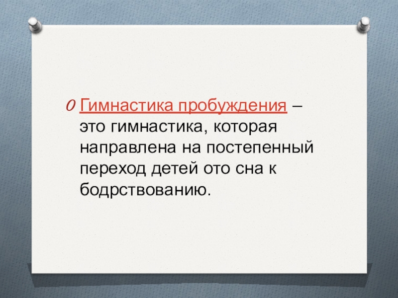 Слайд 2Гимнастика пробуждения – это гимнастика, которая направлена на постепенный переход детей