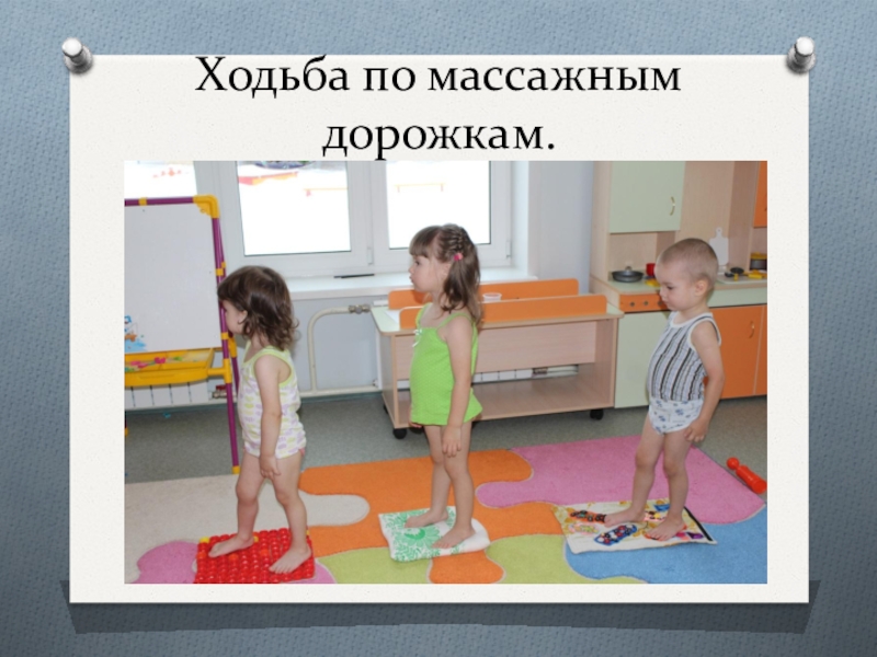 Слайд 7Ходьба по массажным дорожкам