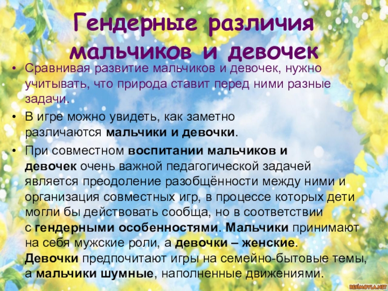 Слайд 7Гендерные различия мальчиков и девочек