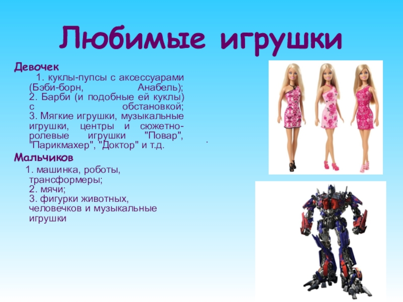Слайд 17Любимые игрушки
