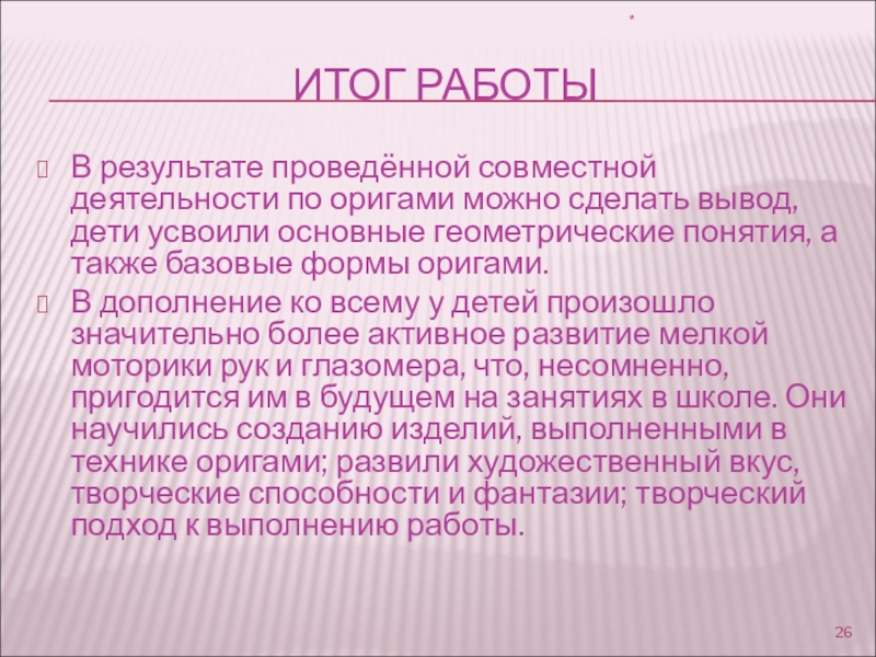 В результате проведённой совместной деятельности по оригами можно сделать вывод,