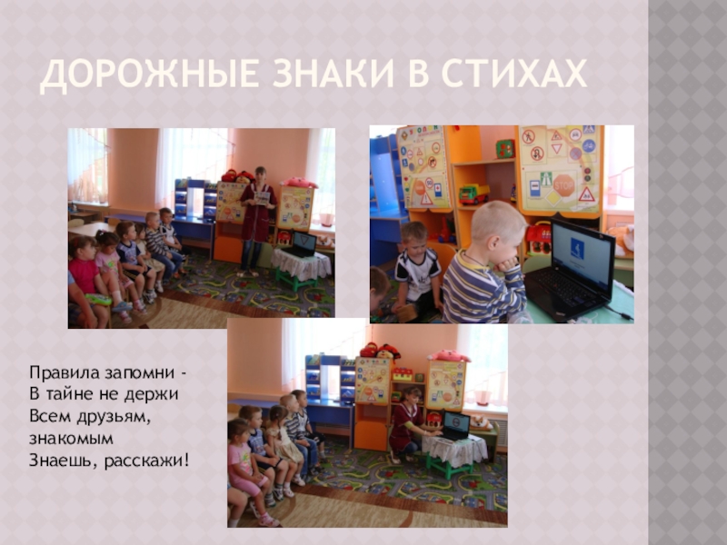 Дорожные знаки в стихахПравила запомни -  В тайне не держи Всем друзьям, знакомым  Знаешь, расскажи!