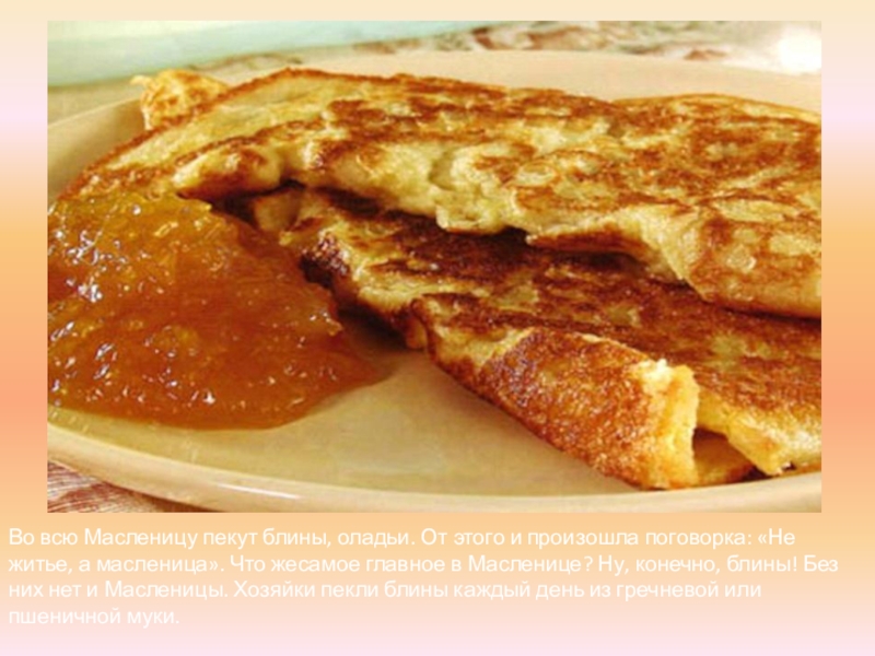 Слайд 6Во всю Масленицу пекут блины, оладьи. От этого и произошла поговорка: