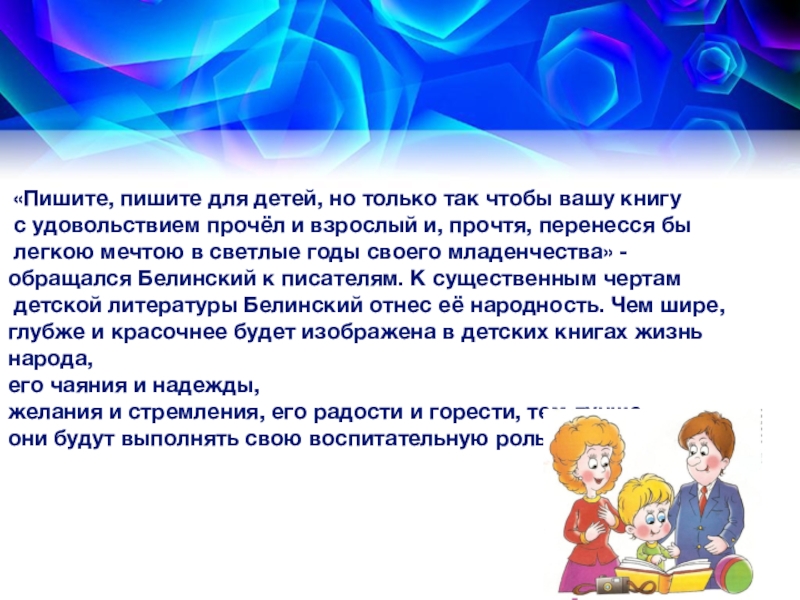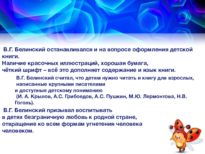 В.Г. Белинский считал, что детям нужно читать и книгу для взрослых,