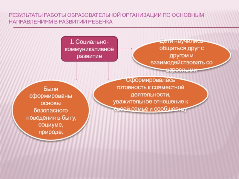 Слайд 9Результаты работы образовательной организации по основным направлениям в развитии ребёнка