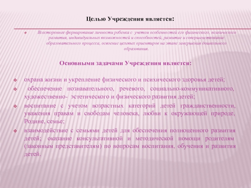 охрана жизни и укрепление физического и психического здоровья детей;