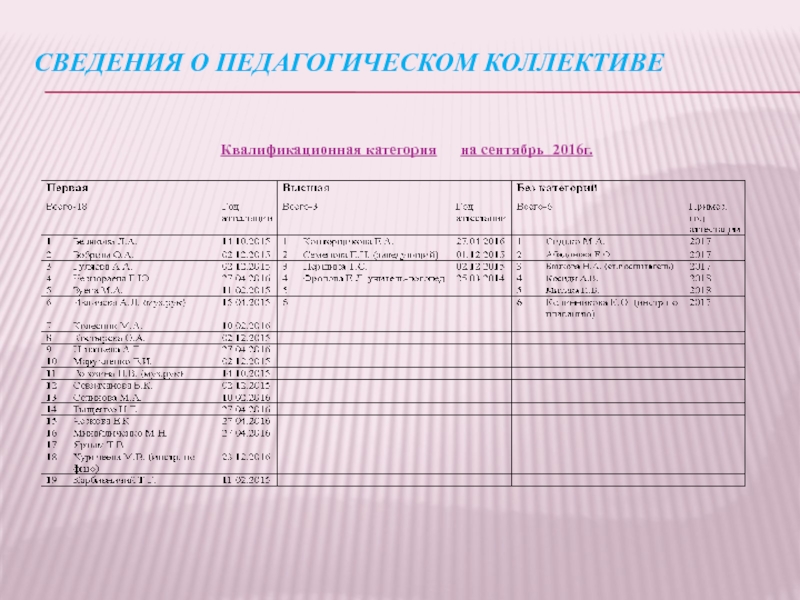 Слайд 26Сведения о педагогическом коллективе