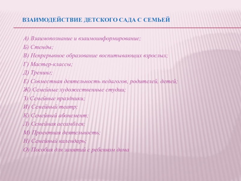 Слайд 23Взаимодействие детского сада с семьей