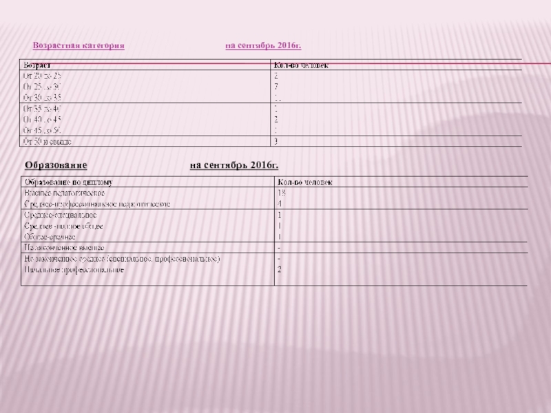Слайд 27Возрастная категория на сентябрь 2016г.